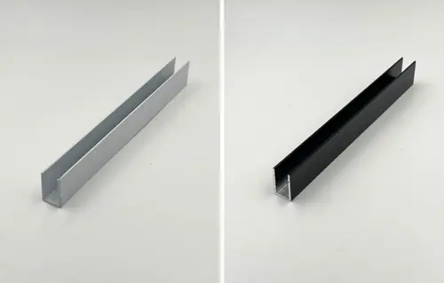 Dos perfiles de aluminio pintados en dos colores diferentes.